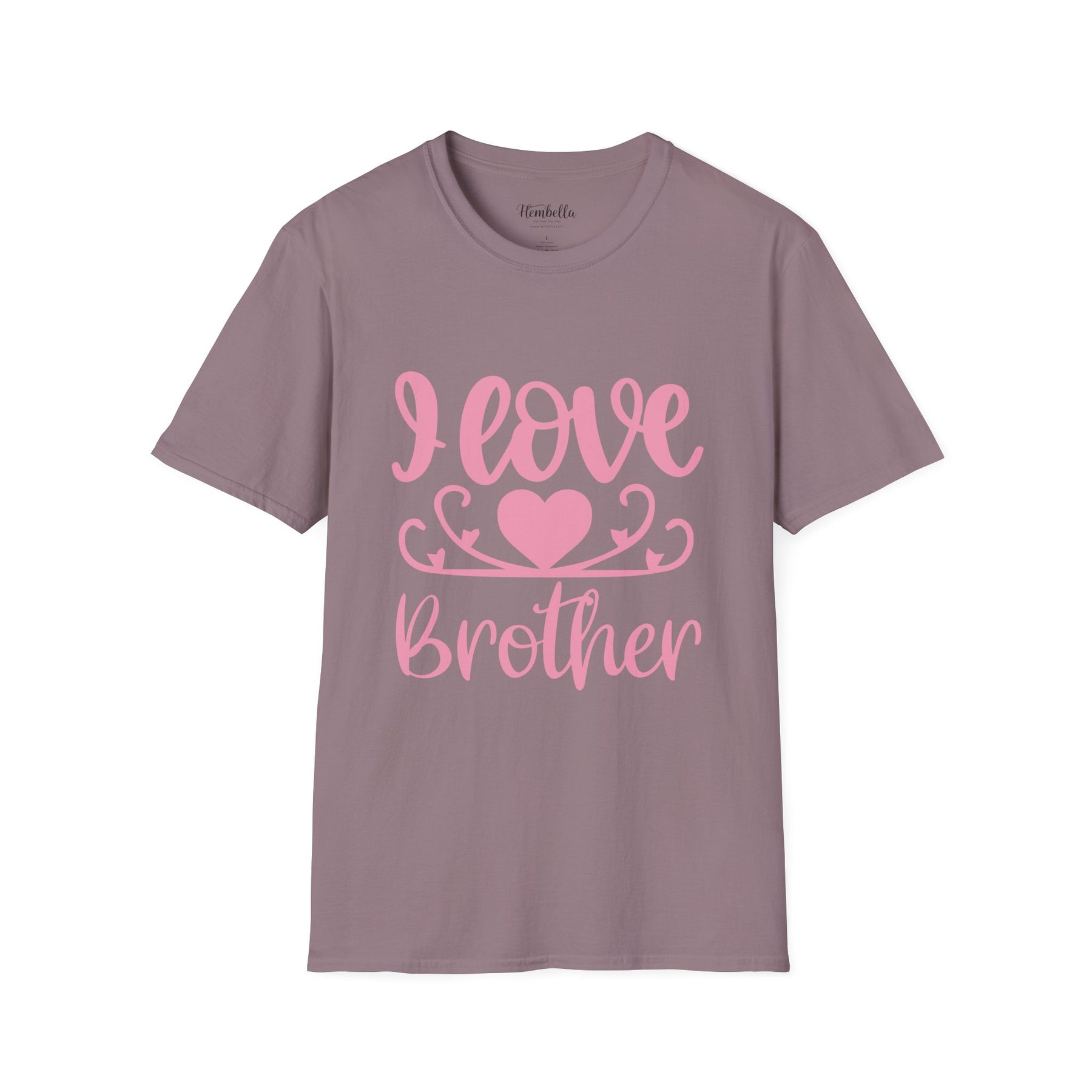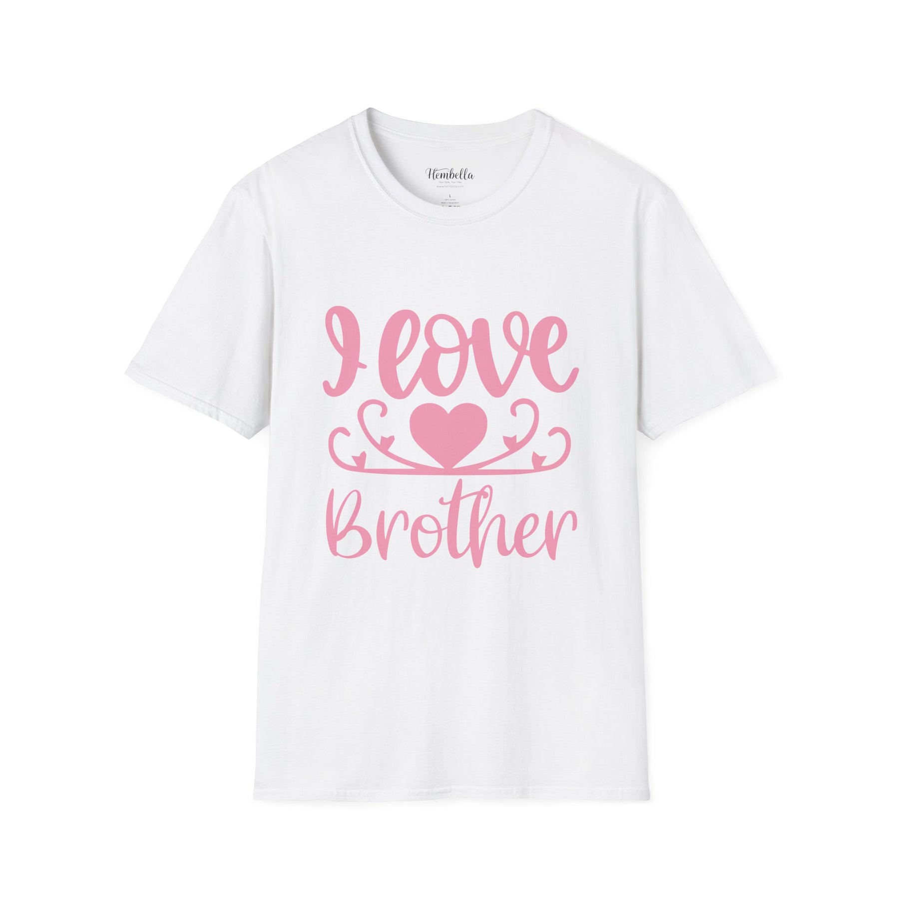 Soft, breathable, and gently worn-in — this lightweight tee carries a simple, heartfelt message in rosy script. The scripted “I Love Brother” design sits centered on a clean white canvas, softened by a hand-drawn heart and delicate swirls for an intimate, homemade feel. It drapes easily over the shoulders and sits close to the body without clinging, so it works as a cozy layer at home or a casual statement out and about. The tear-away label and ribbed collar add comfort details you’ll appreciate after repeated wear. It reads like a note from the heart: subtle, warm, and personal.