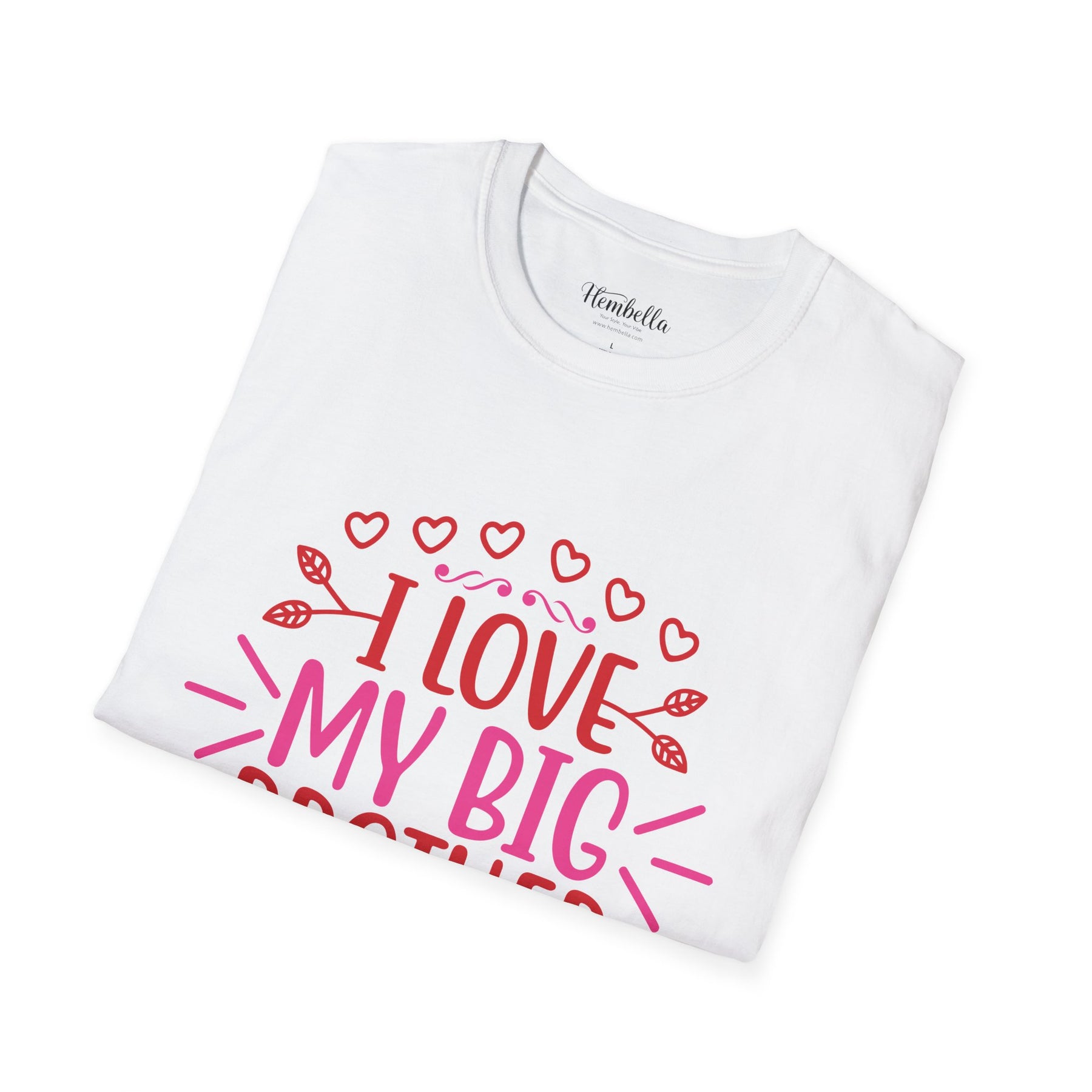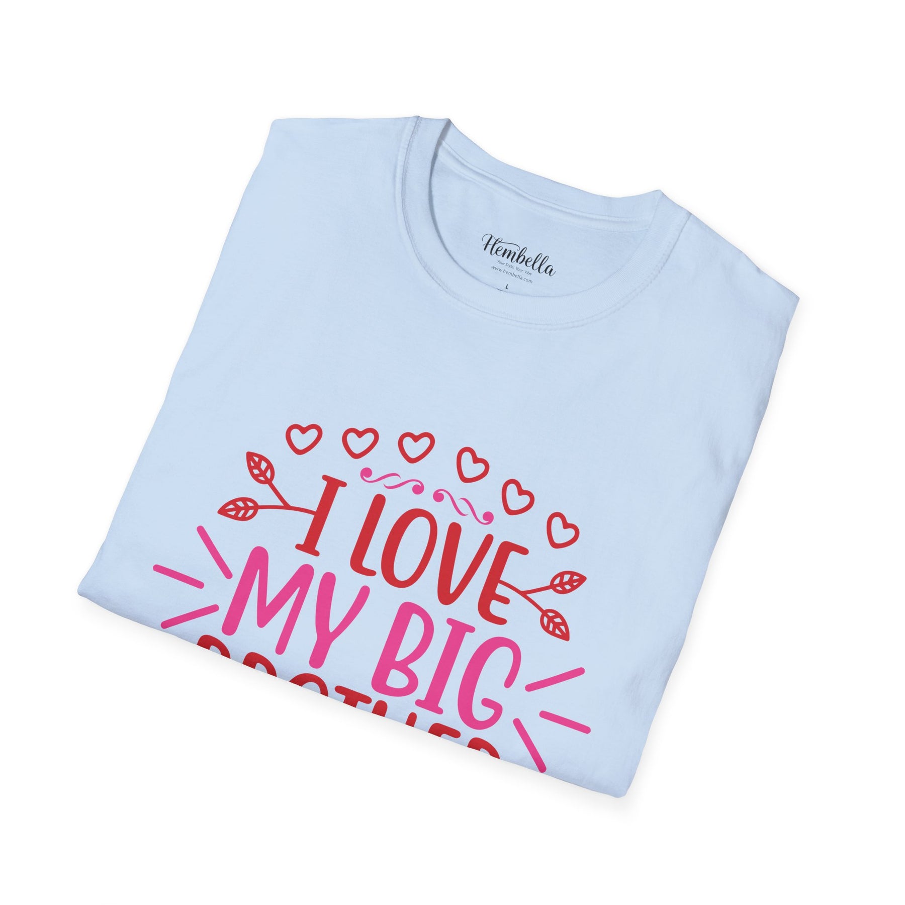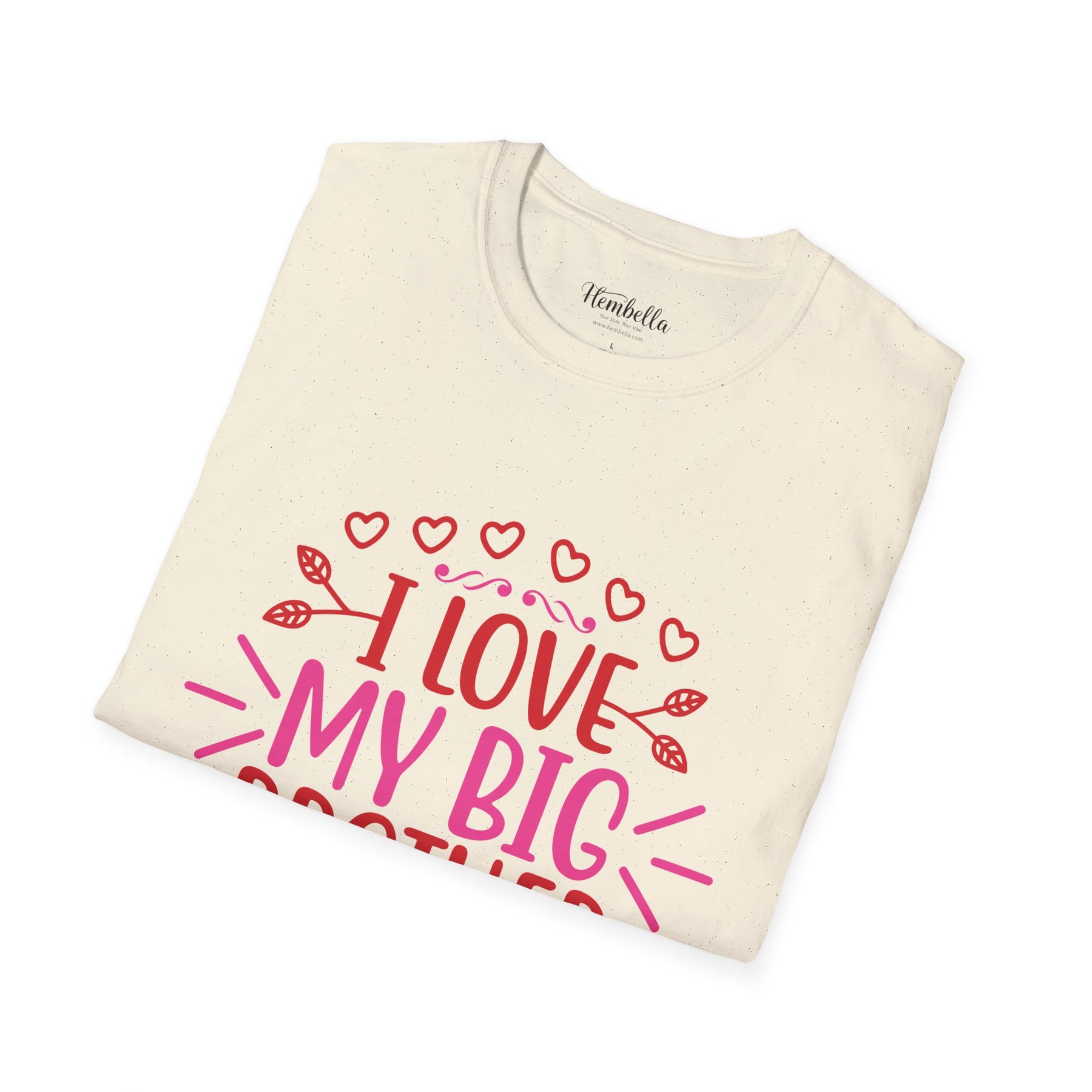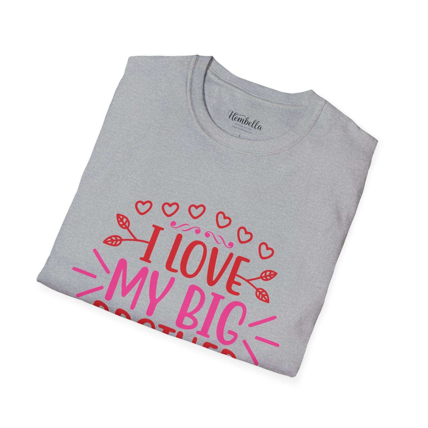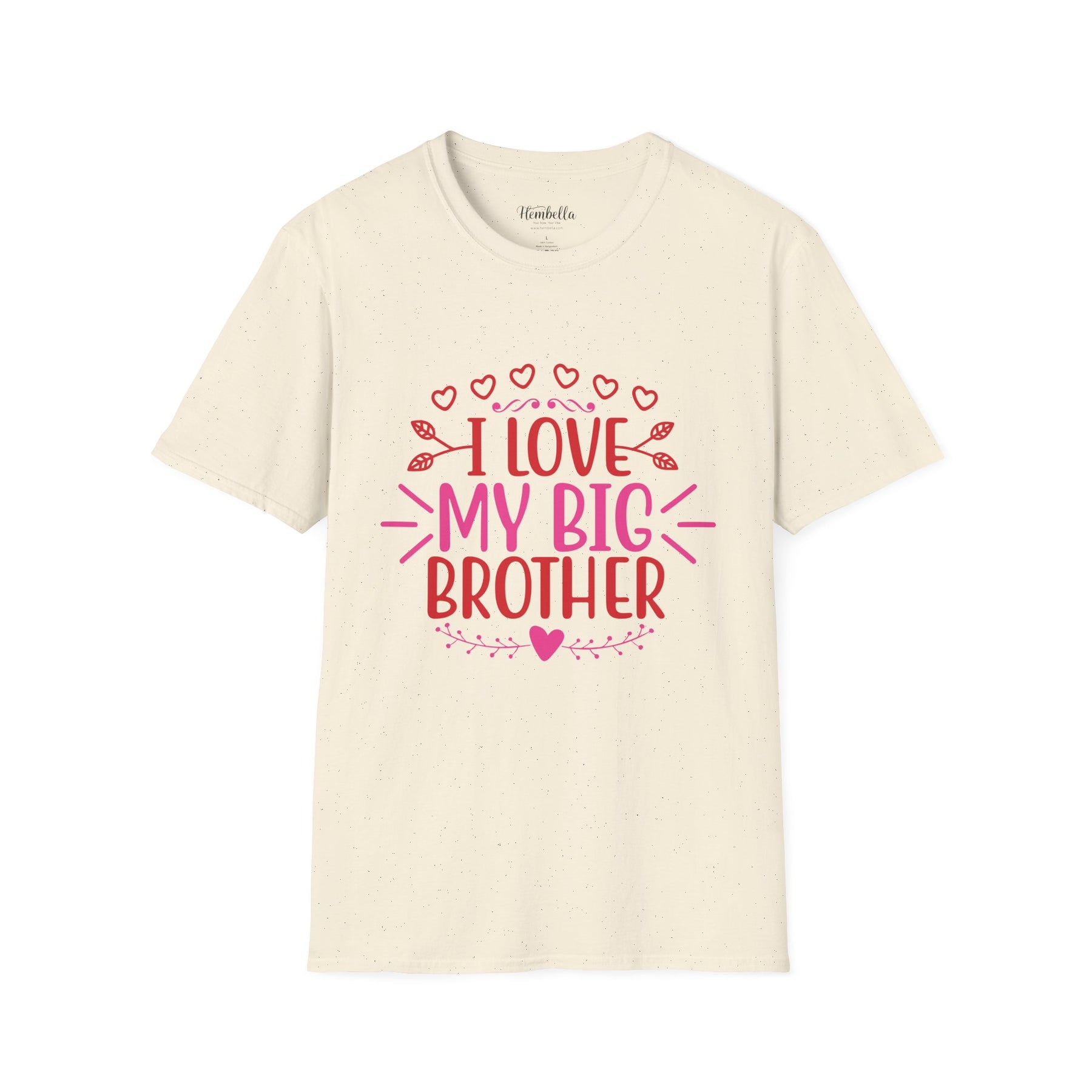 Soft, simple, and full of heart — this lightweight tee turns a small voice into a bold, affectionate statement. The clean crew neck and classic fit sit comfortably on little bodies while the joyful pink lettering and whimsical hearts feel like a hug from the wearer. Whether it's for everyday play, family photos, or a quiet reminder during a visit with big brother, the shirt wears like an everyday favorite that keeps the sentiment front and center. Breathable ring-spun cotton and tear-away labeling mean fewer distractions and more time for hugs, jumps, and stories shared between siblings.