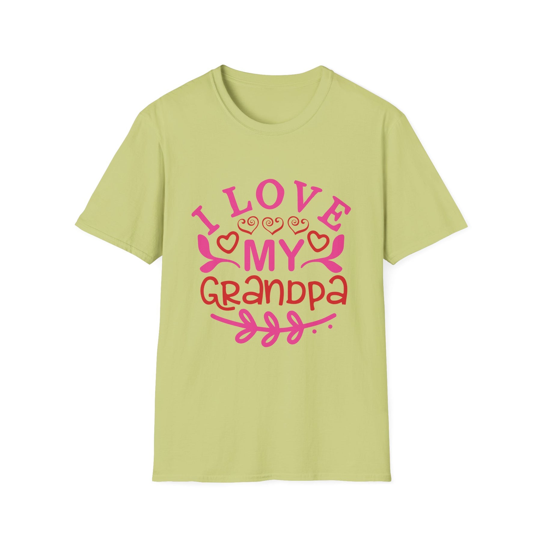 A tender, homespun tee that talks like a hug from the grandkids. Soft, lightweight cotton drapes gently across the shoulders while the cheerful hand-lettered design — playful hearts, swirls, and the loving phrase — sits bright at the chest. It reads like a little love note: casual enough for backyard barbecues and Sunday visits, yet clean and simple for everyday wear. Wear it to make Grandpa smile, to bring warmth to family gatherings, or to tuck into a memory-making afternoon at the park.