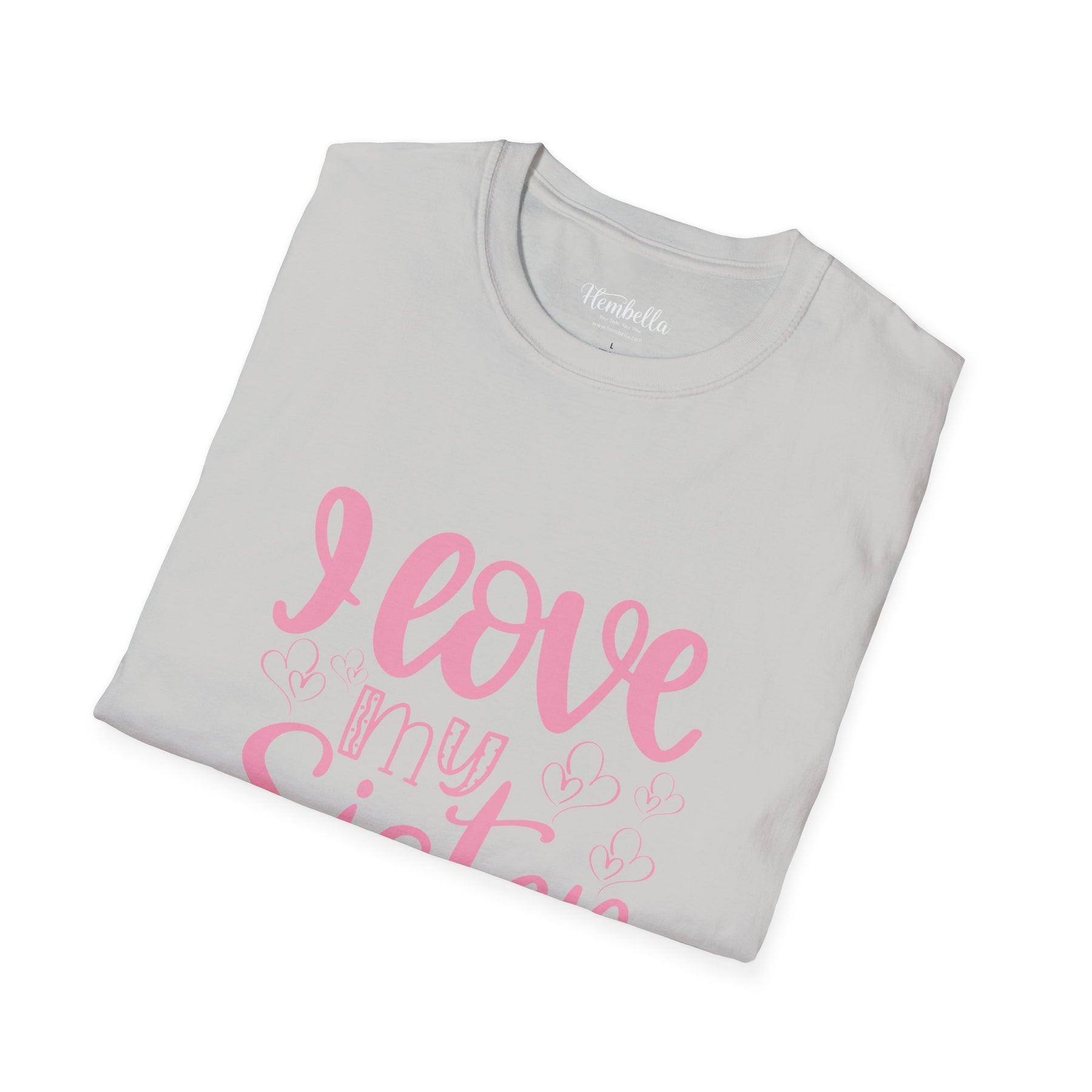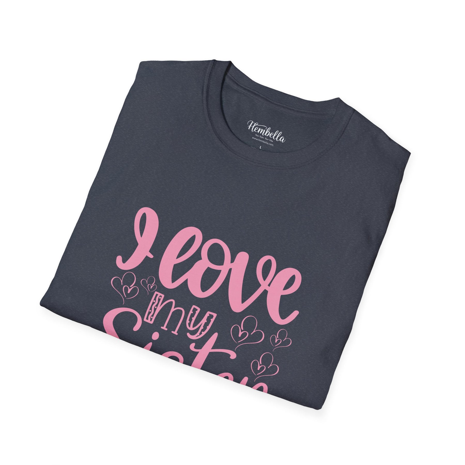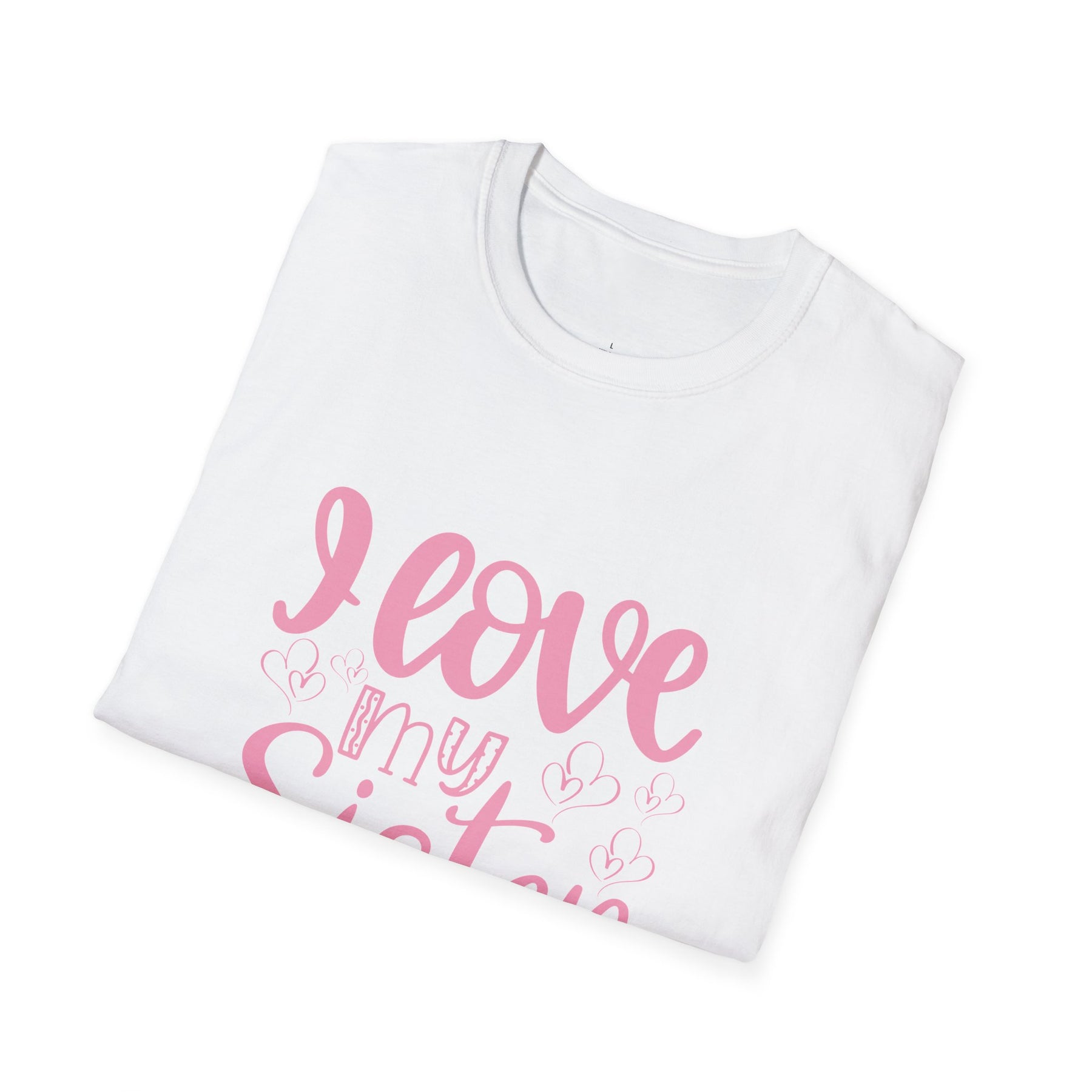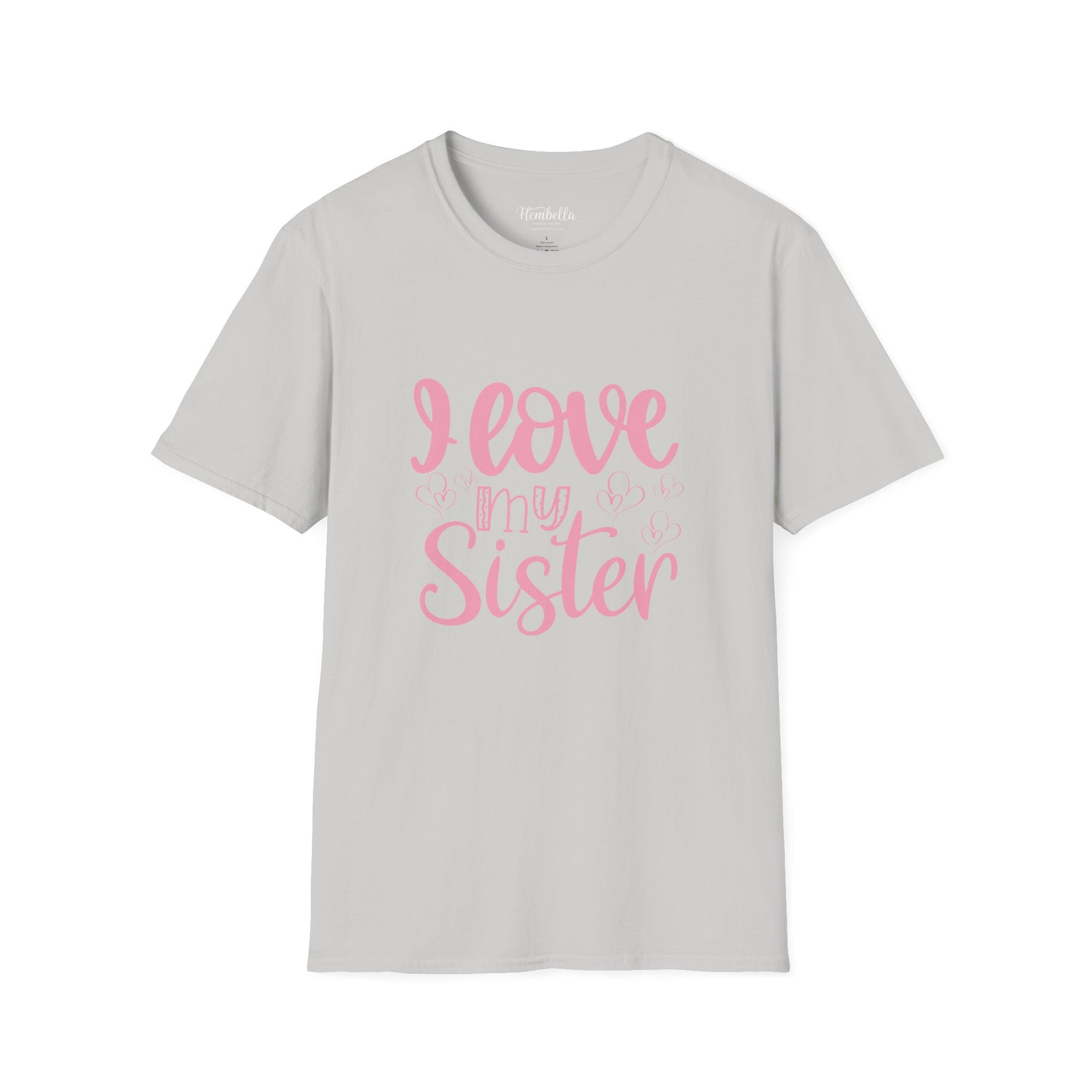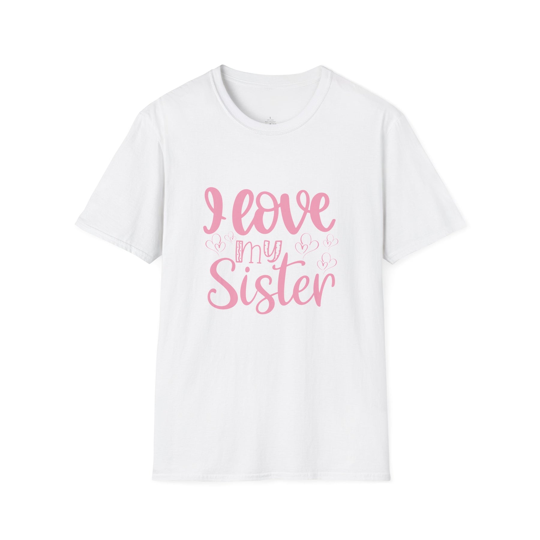 Soft, simple, and heartfelt — this lightweight tee speaks like a warm hug from sibling to sibling. The shirt’s gentle white canvas lets the hand-lettered pink script breathe: “I love my Sister” reads like a whispered memory of shared jokes, late-night talks, and lazy Sunday mornings. Wear it to family brunches, sibling outings, or quiet days at home that turn into inside‑joke marathons. The fabric feels light against the skin and the classic crew silhouette stays familiar and easy to layer. It’s the kind of shirt that settles into everyday life and quietly reminds both wearer and onlooker of the small, steady love that lasts.