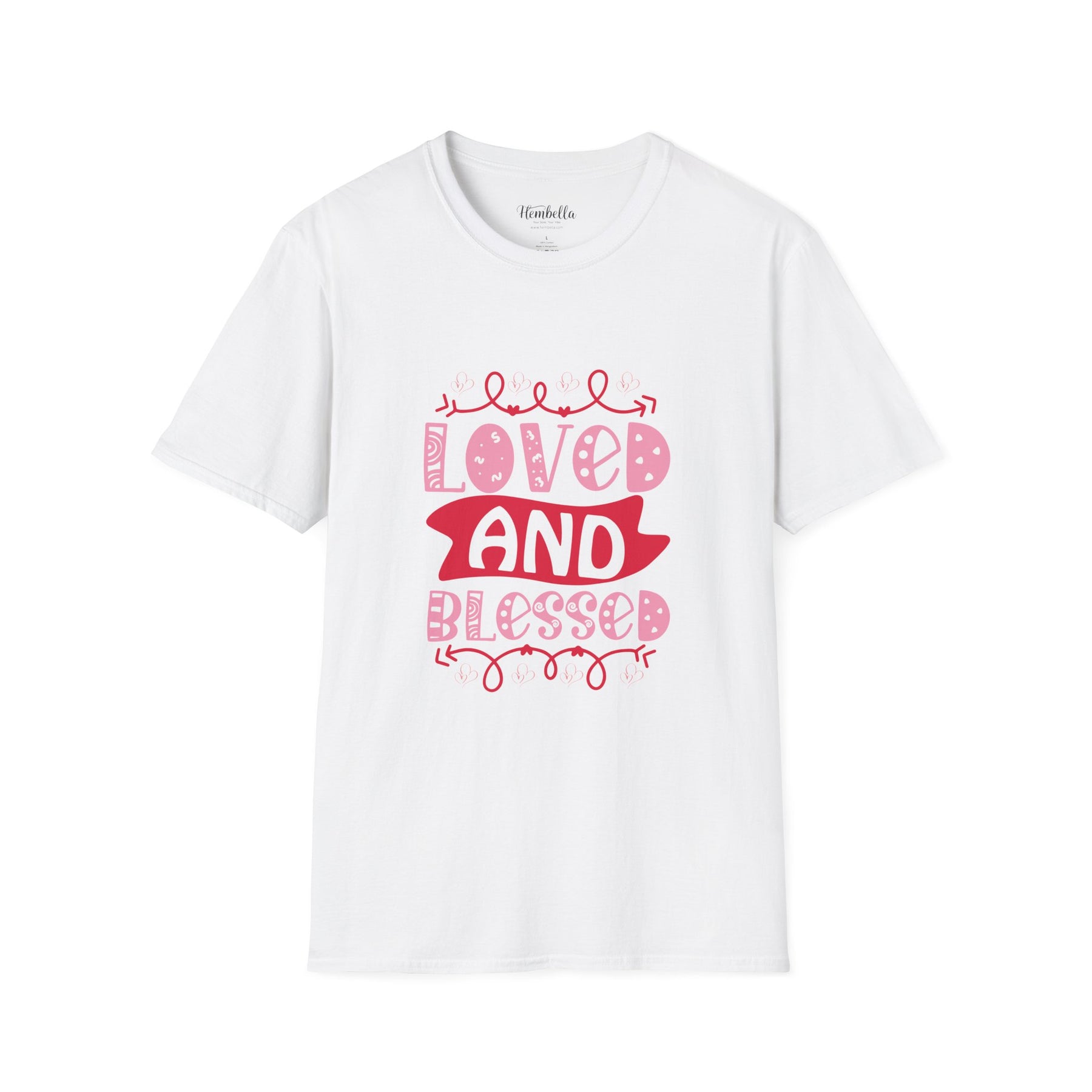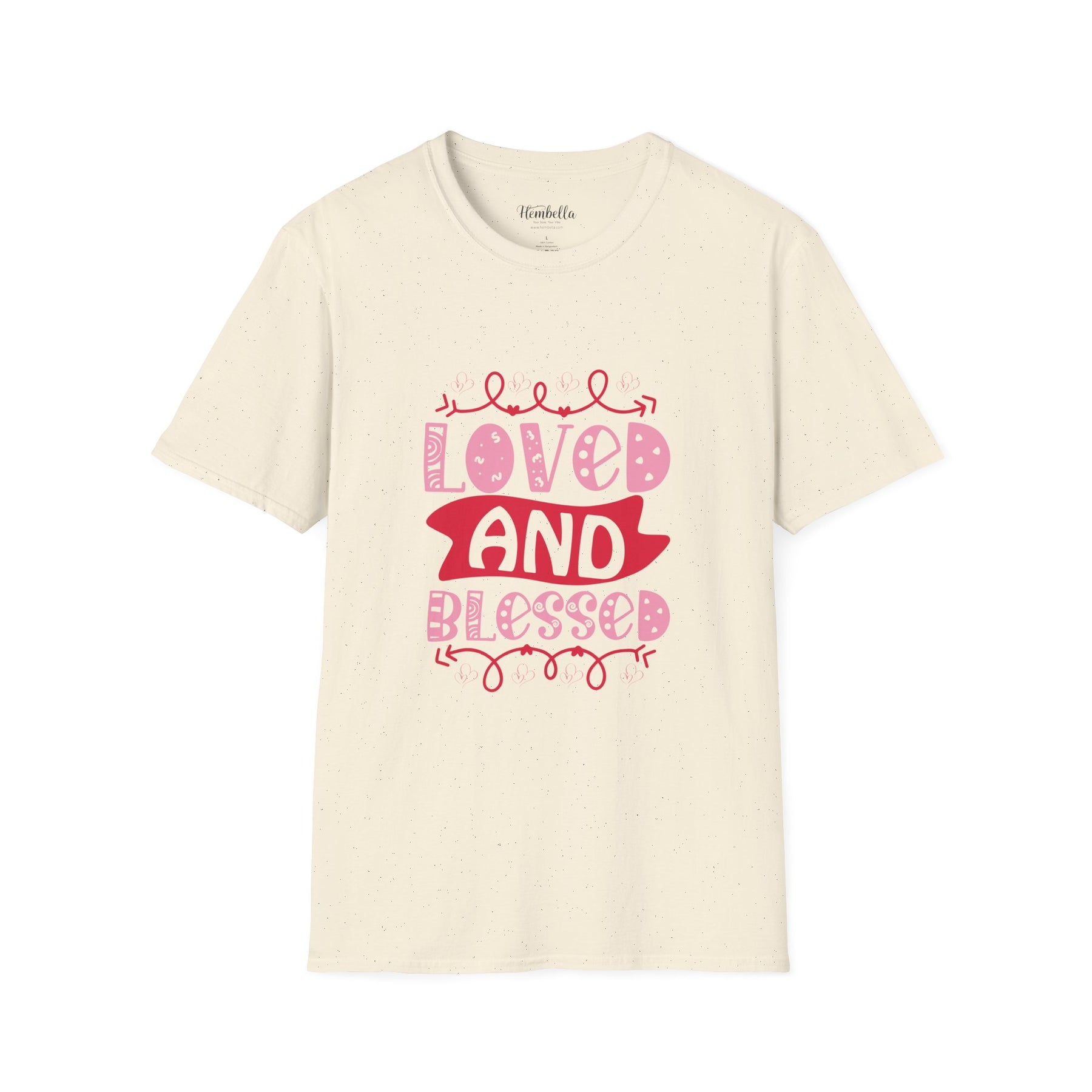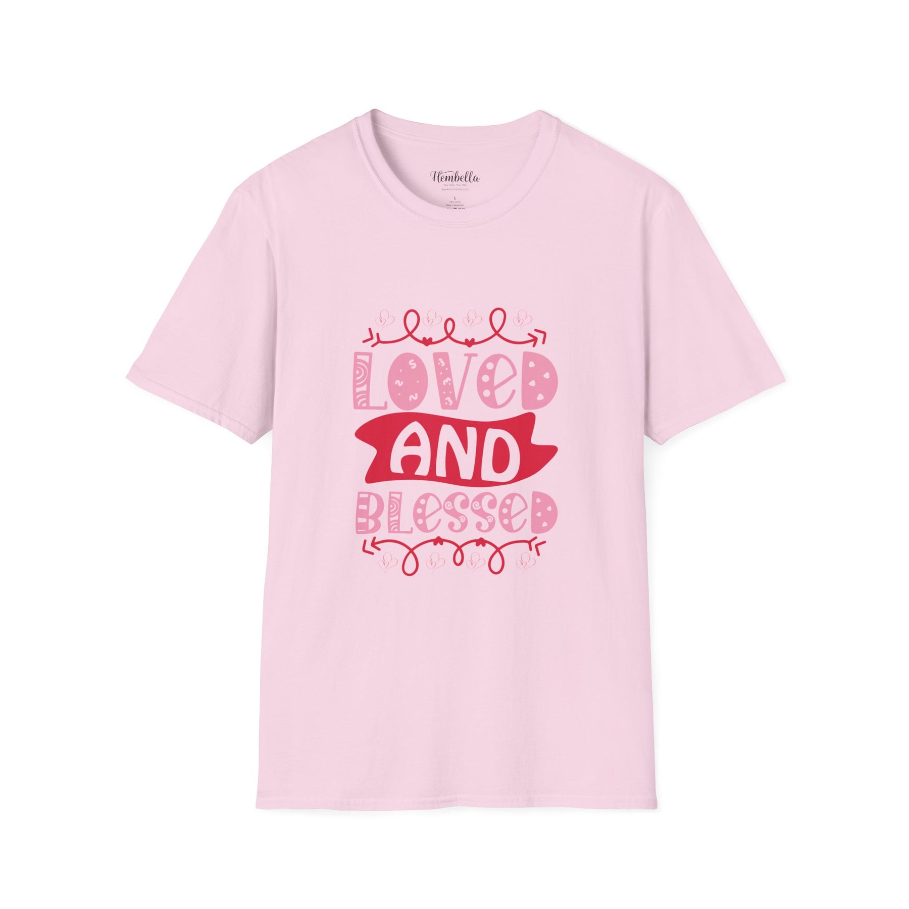 Loved and Blessed T-Shirt — Pink Heart Typography Tee for Faith & Gratitude