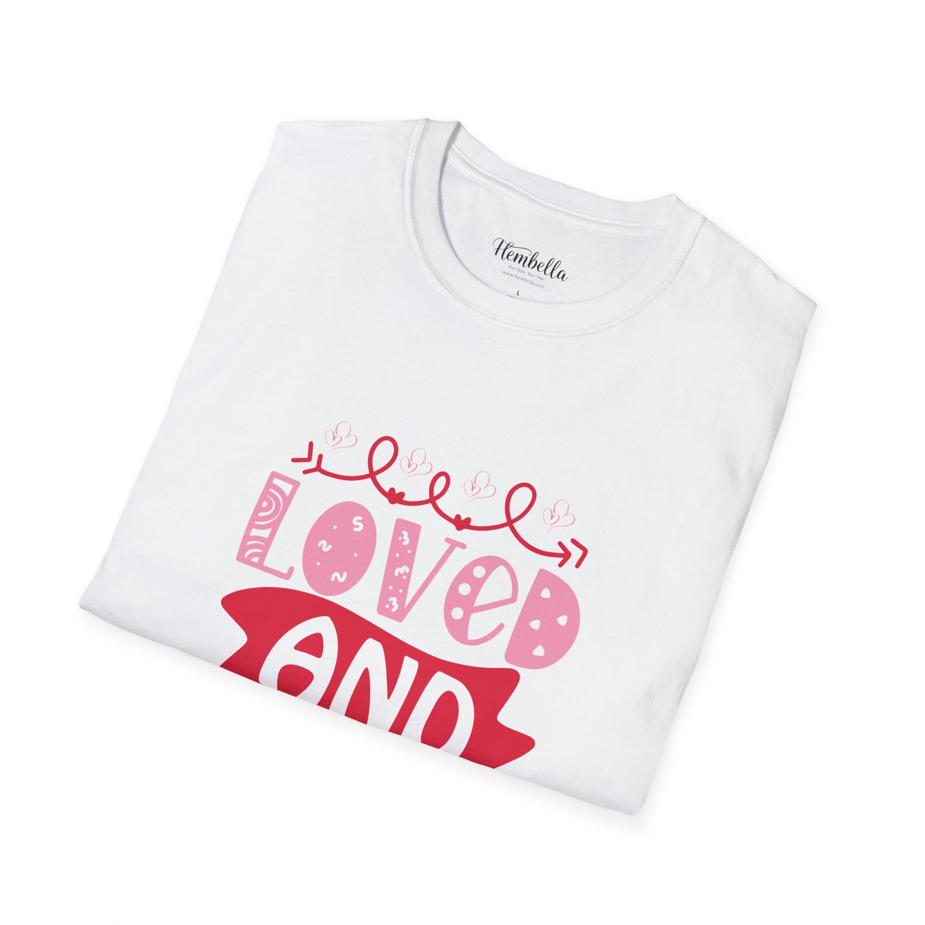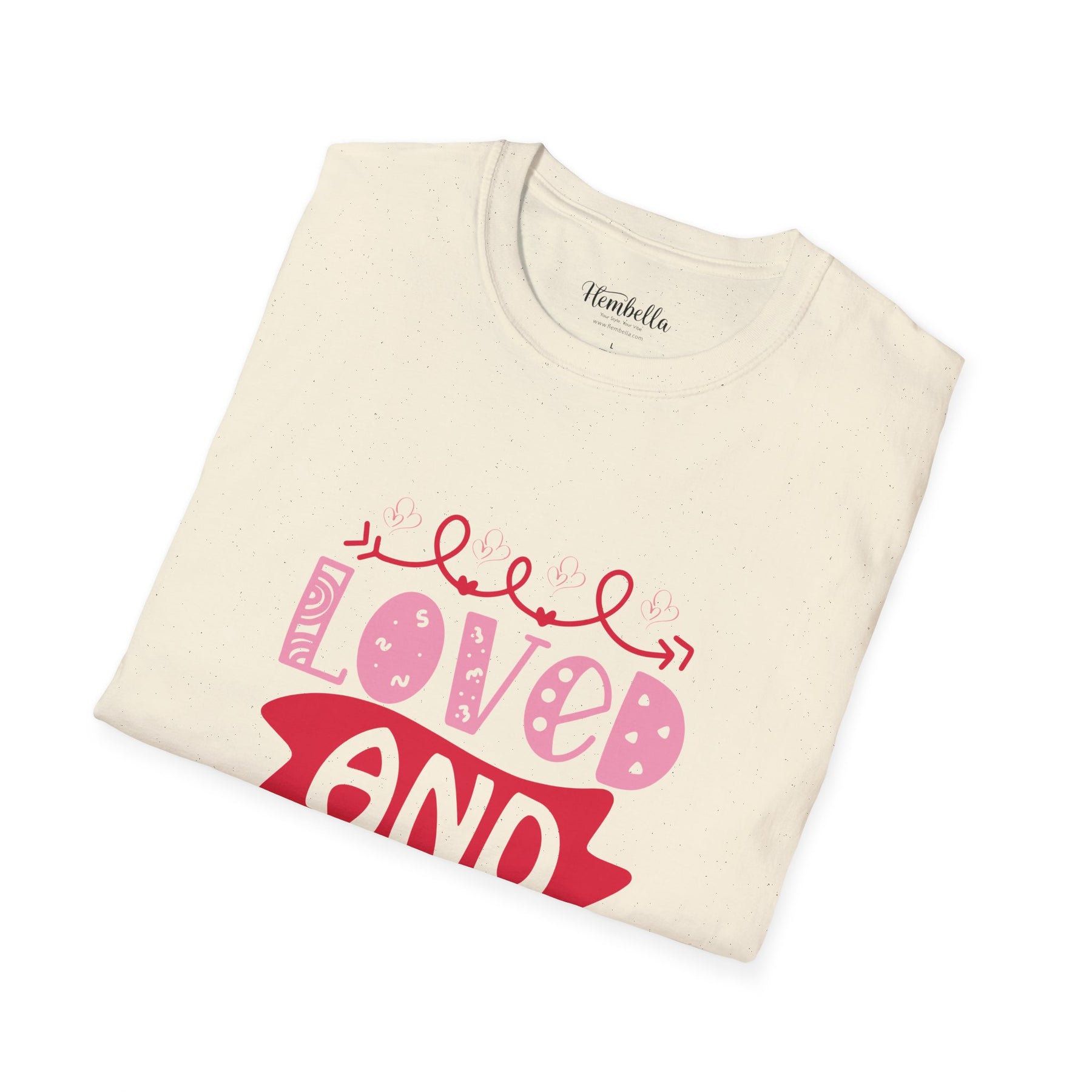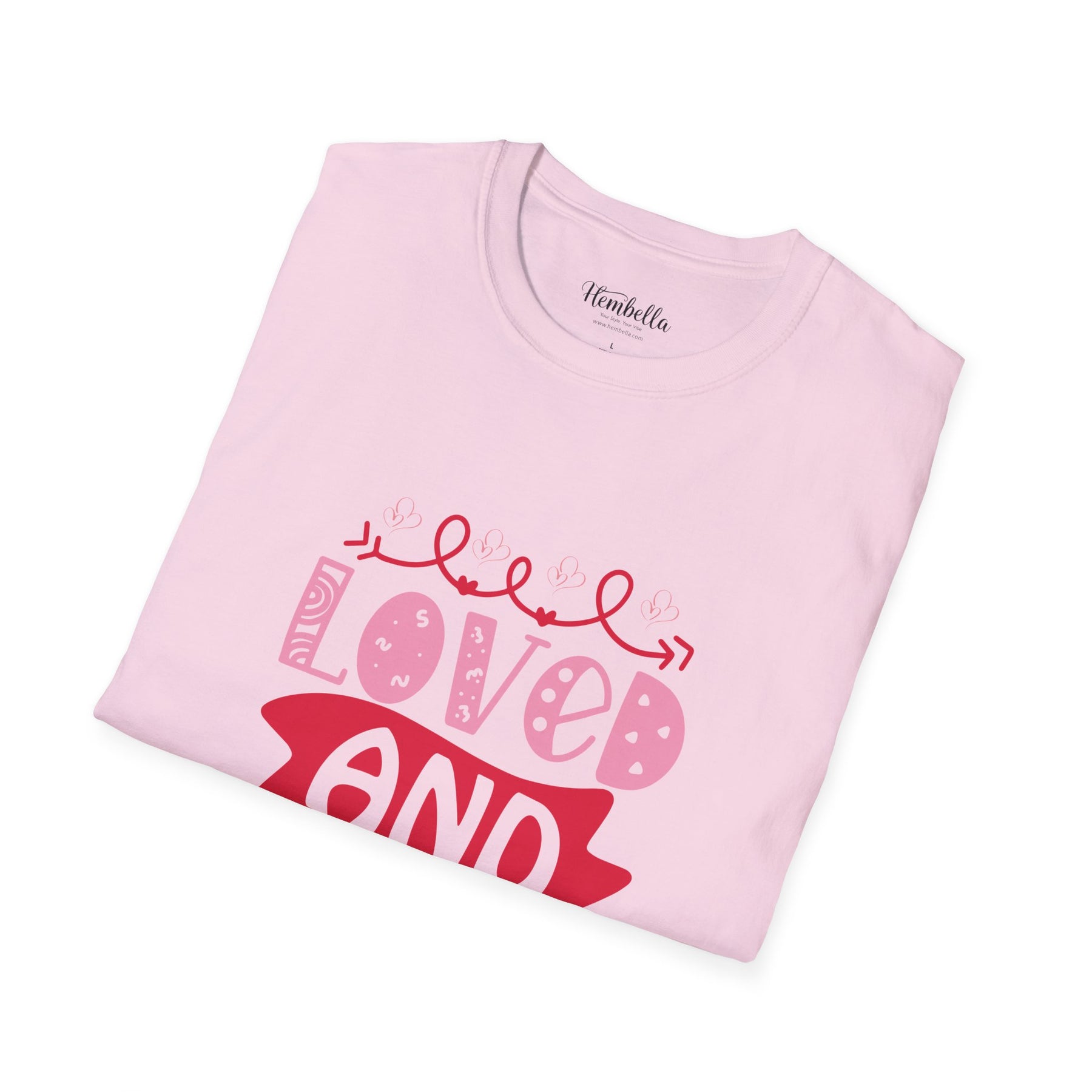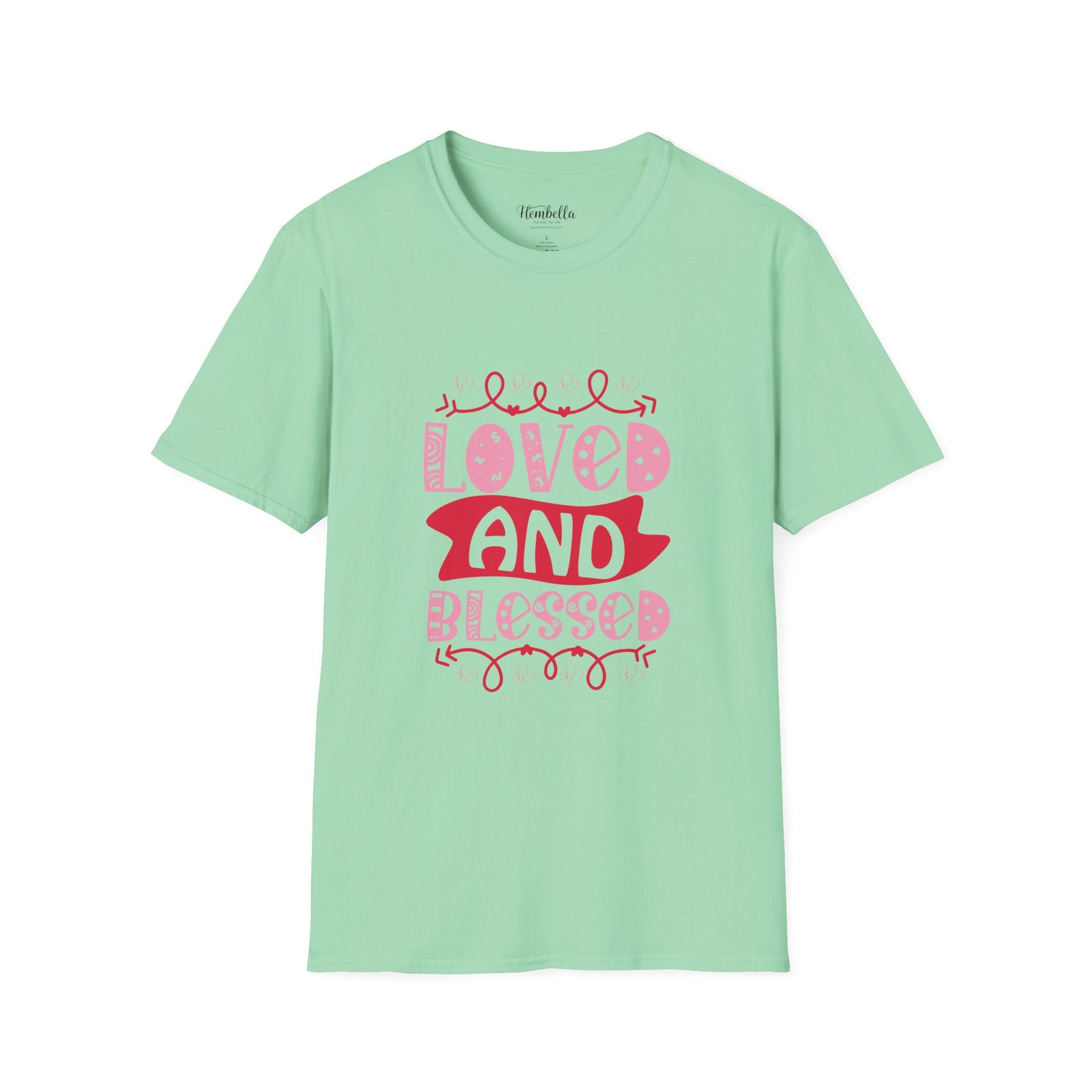Loved and Blessed T-Shirt — Pink Heart Typography Tee for Faith & Gratitude