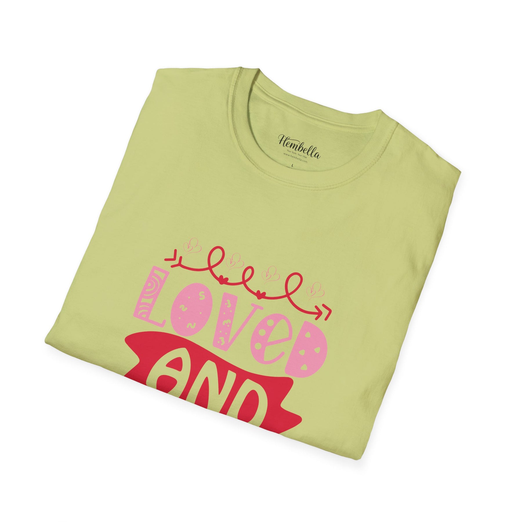 Soft, light, and quietly confident — this crewneck tee wears its heart on the chest with a playful, hand-drawn “Loved and Blessed” design in warm pink and red tones. The breathable 100% ring-spun cotton feels gentle against the skin and drapes in a classic, clean silhouette. Small design details — whimsical swirls and dotted lettering — give the shirt a handmade, cheerful vibe that reads authentic rather than loud. Wear it layered under a cardigan for slow Sundays, out for casual brunches, or tucked into high-waisted jeans for a softened everyday look that says gratitude without saying too much.